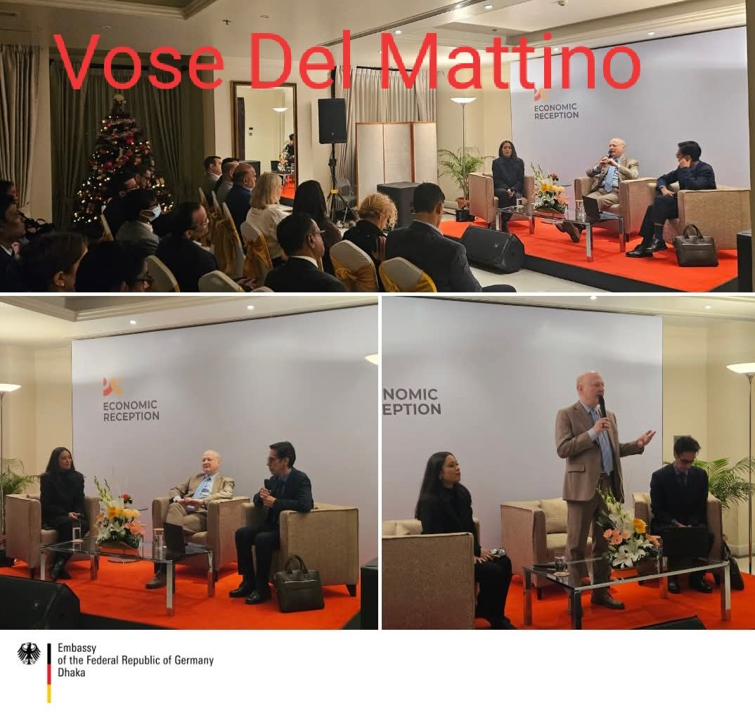 L’Ambasciata tedesca ha organizzato un ricevimento economico con rappresentanti di aziende tedesche, camere di commercio e partner economici in Bangladesh. Lo scorso anno sono stati discussi temi di sviluppo e investimenti. È stata creata una piattaforma per elaborare piani concreti sullo sviluppo attuale e sui piani futuri per il 2026. L’Ambasciatore tedesco in Bangladesh e altri stakeholder hanno discusso e deciso le misure per aumentare gli investimenti. Il Sig. Weiss Parreke, Consulente Economico Senior dell’UNDP Bangladesh, era presente come ospite d’onore.