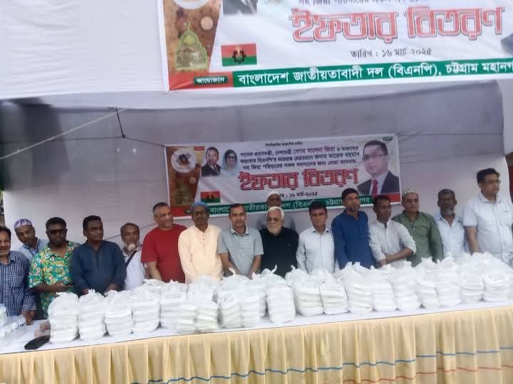 গণমানুষের দল বিএনপি আয়োজন হতদরিদ্র, চিন্ন মুল মানুষের জন্য চট্টগ্রাম মহানগর বিএনপি’র উদ্যোগে সাবেক প্রধানমন্ত্রী,দেশনেত্রী বেগম খালেদা জিয়া,বিএনপি’র ভারপ্রাপ্ত চেয়ারম্যান দেশনায়ক জনাব তারেক রহমান এবং জিয়া পরিবারের প্রত্যেকটি সদস্যদের জন্য দোয়া কামনায় ইফতার বিতরণ অনুষ্ঠানে প্রধান অতিথি হিসেবে উপস্থিত চট্টগ্রাম মহানগর বিএনপি’র সংগ্রামী সদস্য সচিব জননেতা জনাব নাজিমুর রহমান। আরো উপস্থিত ছিলেন নগর বিএনপি নেতা নিয়াজ মোহাম্মদ খান, গাজী আইয়ুব,এম এ সবুর , আবু মুসা, এডভোকেট কামরুল ইসলাম সাজ্জাদ, আব্দুল বাতেন, হেলাল চৌধুরী, কামাল উদ্দিন সরদার, মনজুর মিয়া, জহির আহমেদ, মিজানুর রহমান মোস্তফা, ইদ্রিস আলম, নুরুল আজিম, মোহাম্মদ হেলাল উদ্দিন, এস্কানদার মির্জা, ওসমান গনি শিকদার, রবিউল হাসান রবি, কাইয়ুম হোসেন রিপন, জাফরুল হাসান রানা, ইব্রাহিম মিয়া সাইমন,আব্দুর রহিম, খুরশিদ আলম, মাহবুব হোসেন, মোঃ সেকান্দার কোম্পানি, মোস্তফা কামাল, শফি রানা, মোঃ মনির, মোহাম্মদ ফিরোজ, মোঃ সেলিম, মোঃ লোকমান, শাওন প্রমূখ নেতৃবৃন্দ।