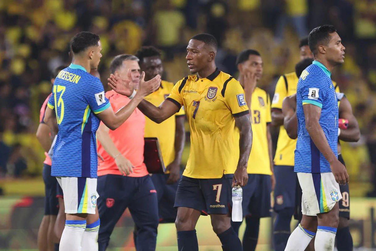 কোচ বদল হলেও মাঠে দেখা গেল পুরোনো ব্রাজিলকেই। দরিভাল জুনিয়রের কোচিংয়ে যে বিবর্ণ ফুটবল খেলছিল পাঁচবারের বিশ্ব চ্যাম্পিয়নরা, অনেক অপেক্ষার পর কার্লো আনচেলত্তিকে ডাগআউটে পেয়ে সেই একই বিবর্ণ ফুটবল খেলল তারা।বিশ্বকাপ বাছাইয়ে একুয়েডরের মাঠে বাংলাদেশ সময় আজ শুক্রবার ভোরে শুরু হওয়া ম্যাচে গোলশূন্য ড্র করেছে ব্রাজিল। স্বাগতিক দল একুয়েডরও হলুদ জার্সি পরে খেলায় ব্রাজিল নিজেদের প্রথম পছন্দের জার্সি পায়নি।হলুদের জায়গায় নীল জার্সি পরে খেলতে নেমে দলটি ছিল অচেনা। বল দখল, সুযোগ তৈরি, গোলের জন্য শট ও লক্ষ্যে রাখা- প্রতিটি সূচকেই তারা পিছিয়ে ছিল একুয়েডরের চেয়ে।প্রায় ৪৮ শতাংশ সময় বল দখলে রেখে গোলের জন্য কেবল তিনটি শট নিতে পারে ব্রাজিল, এর দুটি ছিল লক্ষ্যে। অন্য দিকে একুয়েডরের সাত শটের তিনটি ছিল লক্ষ্যে।ঘরের মাঠে আক্রমণাত্মক ফুটবলে শুরু তরে একুয়েডর। তবে প্রথম ভালো সুযোগ পায় ব্রাজিল। ২২তম মিনিটে ভিনিসিউস জুনিয়রের শট এগিয়ে এসে ঠেকান স্বাগতিক গোলরক্ষব গানসালো ভাইয়ে।পাঁচ মিনিট পর ক্রসে পাঞ্চ করতে পোস্ট ছেড়ে এগিয়ে যান আলিসন বেকার।ব্রাজিল গোলরক্ষক বল নাগাল না পাওয়ায় সুযোগ এসে স্বাগতিকদের সামনে। কিন্তু বিস্ময়করভাবে ফাঁকা জালেও শচ লক্ষ্য রাথখতে পারেনি তারা। ৩৩তম মিনিটে হেড লক্ষ্যে রাখতে পারেননি লম্বা সময় পর ব্রাজিলের হয়ে খেলা কাসেমিরো। পাঁচ মিনিট পর একুয়েডরের অরক্ষিত মিডফিল্ডার হন ইবোয়াহ বিপজ্জনক জায়গা থেকে বাইরে হেড করেন।দ্বিতীয়ার্ধে আরও কমে যায় খেলার গতি।প্রকট হয়ে ওঠে ব্রাজিলের মাঝমাঠ আর আক্রমণভাগের সমন্বয়হীনতা। এই অর্ধে প্রথম ভালো সুযোগ পান ইবোয়াহ। ৬৭তম মিনিটে ঝাঁপিয়ে তার শট ঠেকান আলিসন। নয় মিনিট পর কাসেমিরোর আচমকা দূরপাল্লার শট ঝাঁপিয়ে ফেরান একুয়েডর গোলরক্ষক। ৭৬তম মিনিটে একইভাবে পেরভিস এস্তুপিনানের শট ব্যর্থ করে দেন ব্রাজিল গোলরক্ষক আলিসন।বাকি সময়ে তেমন সুযোগ তৈরি করতে পারেনি কোনো দলই। ১৫ ম্যাচে এটি ব্রাজিলের পঞ্চম ড্র। সঙ্গে পাঁচ জয়ে ২২ পয়েন্ট নিয়ে চার নম্বরে রয়েছে তারা। ২৪ পয়েন্ট নিয়ে দুই নম্বরে একুয়েডর। এদিনই উরুগুয়েকে ২-০ গোলে হারিয়ে ২৪ পয়েন্ট নিয়ে তিনে উঠে এসেছে প্যারাগুয়ে। ২১ পয়েন্ট নিয়ে উরুগুয়ে আছে পাঁচে।