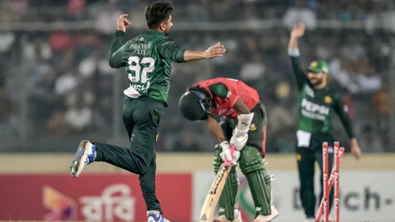 পাকিস্তানের বিপক্ষে প্রথম দুই ম্যাচে জয় নিয়ে আগেই টি-টোয়েন্টি সিরিজ ঘরে তোলে বাংলাদেশ। তৃতীয় টি-টোয়েন্টি জিতে সফরকারীদের হোয়াইটওয়াশ করার সুযোগ ছিল টাইগারদের সামনে। তবে সেই স্বপ্ন বাস্তবে রূপ নিলো না। প্রথমে ব্যাট করে ১৭৮ রান করার পর বাংলাদেশকে ১০৪ রানে গুটিয়ে হোয়াইটওয়াশ এড়িয়েছে পাকিস্তান।প্রথম দুই টি-টোয়েন্টিতে যথাক্রমে ১১০ ও ১২৫ রানে অলআউট হলেও আজ তৃতীয় টি-টোয়েন্টিতে ১৭৮ রানের বড় স্কোর গড়ে পাকিস্তান। তাতেই আসে ৭৪ রানের জয়। শেষ ম্যাচ জিতে সান্ত্বনা নিয়েই দেশে ফিরতে পারছে সালমান আলী আগার দল। ১৭৯ রান বর্তমান টি-টোয়েন্টির বিচারে বড় লক্ষ্য না হলেও মিরপুরের মতো পিচে সেটি যথেষ্ট। আর রান তাড়ায় বাংলাদেশের শুরুটাও হয়েছে অত্যন্ত বাজে। প্রথম দুই ওভারের মধ্যে তানজিদ হাসান তামিম ও লিটন দাসকে হারানোর পর পাওয়ার প্লেতেই হারায় ৫ উইকেট। এই সময়ে মাত্র ২৯ রান করে টাইগাররা। একে একে ফিরে যান মেহেদী হাসান মিরাজ, জাকের আলি ও শেখ মেহেদি হাসান। এক পর্যায়ে ৪১ রানের মধ্যেই ৭ উইকেট হারিয়ে বসে বাংলাদেশ। এর মধ্যে নাঈম শেখ (১০) ছাড়া কেউই দুই অঙ্কের রানও স্পশ করতে পারেননি।নাসুম আহমেদকে নিয়ে অষ্টম উইকেটে ২৪ রান যোগ করে হারের ব্যবধান ছোট করেন মোহাম্মদ সাইফউদ্দিন। শেষ পর্যন্ত তার ৩৪ বলে ৩৫ রানের অপরাজিত ইনিংসের ওপর ভর করেই ১০৪ রান করে অলআউট হয় বাংলাদেশ। ৭৪ রানের জয়ে হোয়াইটওয়াশ এড়ায় পাকিস্তান।এদিন, টসে জিতে আজ পাকিস্তানকে প্রথমে ব্যাটিংয়ে পাঠান লিটন দাস। আগের দুই ম্যাচে শুরুতে বিপর্যয় দেখলেও আজ ঝোড়ো সূচনা এনে দেন ফখরের বদলে একাদশে সুযোগ পাওয়া সাহিবজাদা ফারহান ও সাইম আইয়ুব। পাওয়ার প্লেতেই ৫৭ রান তোলা এই দুই ওপেনার গড়েন ৮২ রানের জুটি। অষ্টম ওভারের পঞ্চম বলে সাইমকে ফিরিয়ে সাফল্য এনে দেন নাসুম আহমেদ। দীর্ঘ প্রায় ২ বছর পর আন্তর্জাতিক টি-টোয়েন্টি খেলতে নামা এই তারকা পরে আরও একটি উইকেট পান। ৪ ওভারে মাত্র ২২ রান দিয়ে এই দুই উইকেট পান তিনি।পাকিস্তান দলের সর্বোচ্চ রান সংগ্রাহক সাহিবজাদা দ্বিতীয় ব্যাটার হিসেবে ফেরেন দলীয় ৯৩ রানে। ৪১ বলে ৬টি চার ও ৫ ছক্কায় ৬৩ রান করেন তিনি। এদিন টানা তৃতীয় ইনিংসে ব্যর্থ হলেন পাকিস্তানের মাটিতে বাংলাদেশের বিপক্ষে সিরিজসেরা মোহাম্মদ হারিস। তবে ১৭ বলে ৩৩ রানের কার্যকরী ইনিংস খেলেন হাসান নওয়াজ।হুসাইন তালাত, ফাহিম আশরাফরা ব্যর্থ হলেও মোহাম্মদ নওয়াজের ১৬ বলে ২৭ রানের ইনিংসে ৭ উইকেটে ১৭৮ রানের বড় সংগ্রহ পায় পাকিস্তান। নাসুম সবচেয়ে কম রান দিলেও ৪ ওভারে ৩ উইকেট দিয়ে বাংলাদেশের সেরা বোলিং ফিগার পেসার তাসকিন আহমেদের। বোলিং কোটা পূর্ণ করে ৩৮ রান দেন তিনি। একটি করে উইকেট নিয়েছেন শরিফুল ই