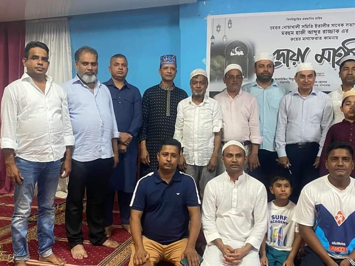 ইতালির বৃহত্তর নোয়াখালী সমিতি সাবেক সভাপতি ইতালি বি,এন, পি,নেতা ইতালি থেকে প্রকাশিত দৈনিক সকালের কন্ঠের পৃষ্ঠপোষক আবদুর রাজ্জাক বিদায়ী আত্নার মাগফিরাত কামনা করে মিলাদ ও দোয়া আয়োজন করে বৃহত্তর নোয়াখালী সমিতি, ইতালী। এই মিলাদ মাহফিলে রোমে বসবাসকারী বৃহত্তর নোয়াখালীর সকল সদস্য নেতারা উপস্থিত ছিলেন। মিলাদ দোয়া মাহফিল তার কর্মময় জীবন নিয়ে সংক্ষিপ্ত আলোচনা করেন বৃহত্তর নোয়াখালী সমিতি সভাপতি আলাউদ্দিন শিমুল, বৃহত্তর ঢাকা সমিতি ইতালির সভাপতি আনিমুল ইসলাম ( সালাম) ইতালি ফেনী সমিতির সাবেক সহ সভাপতি মিলন, পাঞ্চেয়ত ট্রাভেলস মালিক সিরাজ পাঞ্চায়েত। বাংলাদেশ কমিউনিটি অনেক নেত্ববৃন্ধ। সকলে তাকে একজন সদালাপী ও বিনয়ী বলে জানান। তাকে মহান আল্লাহ জান্নাতুল ফেরদৌস দান করুন এই দোয়া করেন। তার পরিবারের সকলকে তার কর্মময় জীবন অনুসরণ করে ইতালিতে বসবাসরত সকল বাংলাদেশী সেবা করার আহবান জানান। মিলাদ ও দোয়া মাহফিল শেষ সবাইকে মিষ্টি করানো হয়। দোয়া পরিচালনা করেন, রোম ইতালির তরপিনাতারা মসজিদে পেশ ইমাম।