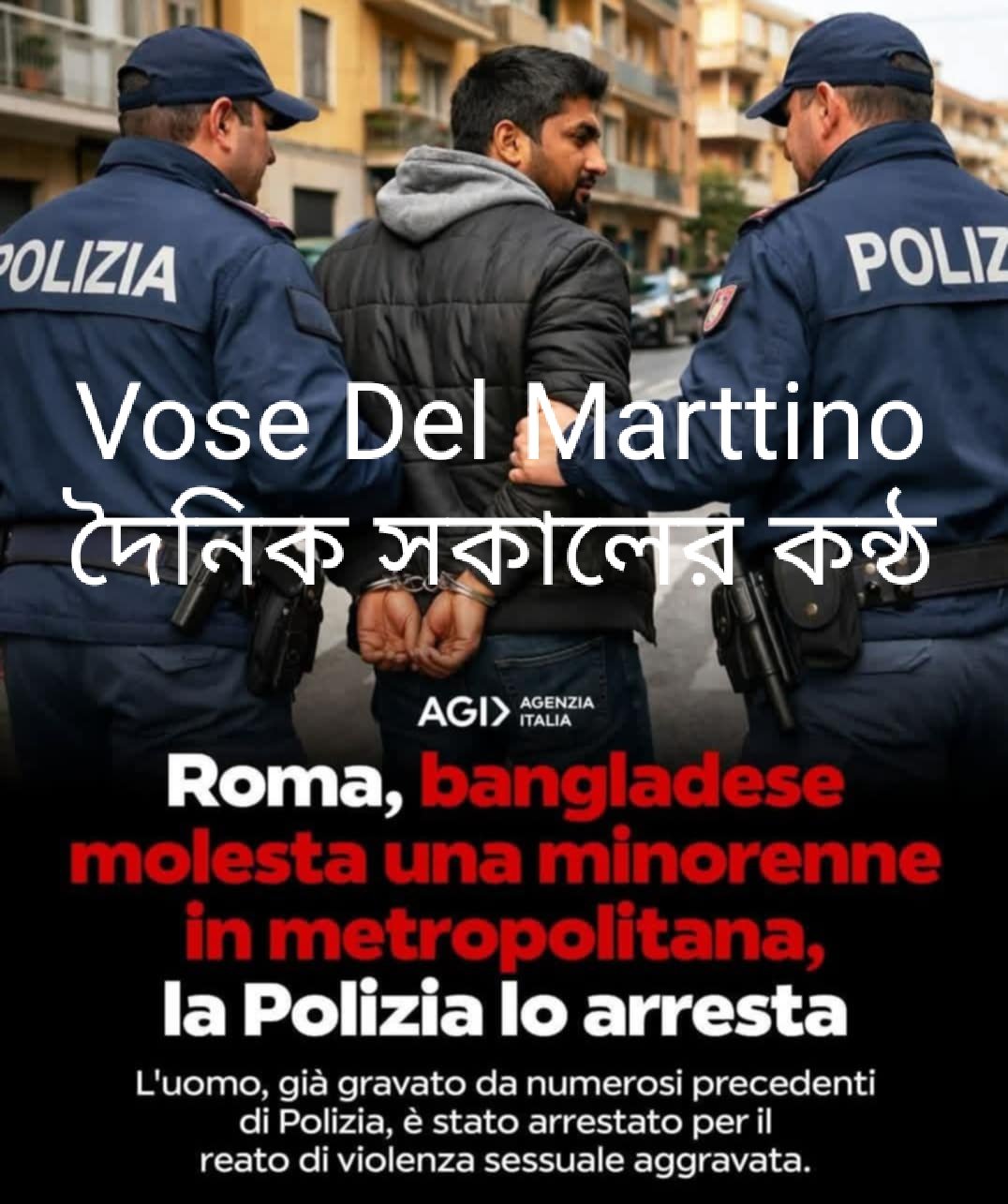 শিমুল রহমান স্টাফ রিপোর্টার রোম -ইতালি :রোমে যৌন হেনেস্তা জন্য বাংলাদেশী এক যুবকে আটকের পর অভিবাসী বাংলাদেশীদের মধ্যে তীব্র সমালোচনা হচ্ছে। বাংলাদেশী অভিবাসীদের সুনাম উপর বিনষ্টকারী এই যুবকে তুমুল সমালোচনা হচ্ছে। ইতালির রোমে এই ঘটনাটি সত্যিই চাঞ্চল্য সৃষ্টি করেছে। বুধবার (২৮ জানুয়ারি ২০২৬) রোমের মেট্রো এ (Metro A)-তে পরিবারের সাথে ভ্রমণে আসা এক নাবালিকা পর্যটককে যৌন হেনস্থা করার অভিযোগে ২৮ বছর বয়সী এক বাংলাদেশী ব্যক্তিকে গ্রেপ্তার করেছে দেশটির পুলিশ।ভ্যাটিকান সিটি যাওয়ার পথে চলন্ত ট্রেনের ভেতরে ওই ব্যক্তি কিশোরীকে স্পর্শ করে এবং জোরপূর্বক চুমু দেওয়ার চেষ্টা করে । নাবালিকার চিৎকারে আশপাশের যাত্রীরা তাকে রক্ষা করতে এগিয়ে আসেন এবং পুলিশে খবর দেন।পুলিশ অভিযুক্তকে ভিত্তোরিও ইমানুয়েল স্টেশনে আটক করে । তদন্তে দেখা গেছে, ওই ব্যক্তির বিরুদ্ধে আগে থেকেই পুলিশের কাছে অপরাধের রেকর্ড ছিল। দুই বছর আগে অর্থাৎ ২০২৪ সালেও একটি বাসে এক নারীকে হেনস্থা করার অভিযোগে তাকে গ্রেপ্তার করা হয়েছিল ।রোম পুলিশ  তাকে গুরুতর যৌন সহিংসতার অভিযোগে গ্রেপ্তার করে কারাগারে পাঠিয়েছে । ইতালির উপ-প্রধানমন্ত্রী মাত্তেও সালভিনি প্রায়ই এ ধরনের অপরাধের বিরুদ্ধে কঠোর অবস্থান এবং কড়া আইনের দাবি জানিয়ে থাকেন। এমনিতেই মাত্তেও সালভিনি ইতালির কট্টরপন্থী একজন রাজনীতিবিদ যিনি ইতালিতে বিদেশীদেরকে পছন্দ করেন না,তার ওপর একজন বাংলাদেশী যদি এই ধরনের অপরাধের সাথে জড়িয়ে পড়ে, এতে করে ইতালিতে অবস্থানরত গোটা বাংলাদেশ কমিউনিটির বড় ধরনের বদনাম হয় l শুভ তাই নয় বলে বিগতকয়েক দিনের পরপর কয়েকটি ঘটনায় বাংলাদেশীদের উপর ইতালী সরকার আরও কঠোর হতে বাধ্য হবেন। যা ইতালীতে বসবাসকারীদের বাংলাদেশীর উপর দুর্ভোগ বয়ে আনবে।