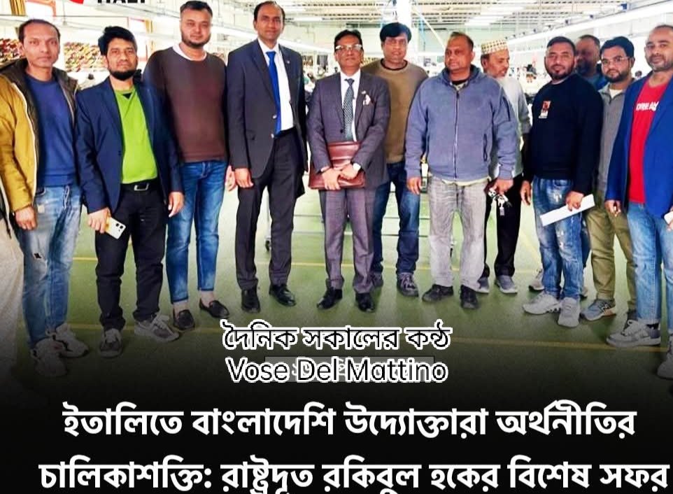 ​রোম, ইতালি: ইতালির পালমা কাম্পানিয়ায় অবস্থিত বাংলাদেশি উদ্যোক্তাদের পরিচালিত বিভিন্ন পোশাক কারখানা পরিদর্শন করেছেন দেশটিতে নিযুক্ত বাংলাদেশের রাষ্ট্রদূত এ টি এম রকিবুল হক। প্রবাসীদের সৃজনশীলতা ও ব্যবসায়িক সাফল্যে সন্তোষ প্রকাশ করে তিনি বলেন, এই উদ্যোক্তারা কেবল নিজেদের ভাগ্য বদলাচ্ছেন না, বরং ইতালির মূলধারার অর্থনীতিতে সরাসরি অবদান রেখে সামাজিক একীকরণের এক উজ্জ্বল দৃষ্টান্ত স্থাপন করেছেন।পরিদর্শনকালে রাষ্ট্রদূত একটি গুরুত্বপূর্ণ কৌশলগত দিক তুলে ধরেন। তিনি জানান:বাংলাদেশ থেকে উচ্চমানের ফেব্রিক ও কাঁচামাল সরাসরি ইতালিতে এনে উৎপাদন করলে খরচ উল্লেখযোগ্যভাবে হ্রাস পাবে।বাংলাদেশি কাঁচামাল ও ইতালীয় কারিগরি দক্ষতার সমন্বয়ে তৈরি পণ্য বিশ্ববাজারে ‘মেড ইন ইটালি’ ব্র্যান্ডকে আরও শক্তিশালী ও প্রতিযোগিতামূলক করে তুলবে।এই মেলবন্ধন ইউরোপের বাজারে এক নতুন বিপ্লব ঘটানোর সম্ভাবনা রাখে।সরকারের কূটনৈতিক অগ্রাধিকার সফরে রাষ্ট্রদূতের সঙ্গে উপস্থিত ছিলেন দূতাবাসের প্রথম সচিব জনাব আসিফ আনাম সিদ্দিকী। তিনি প্রবাসীদের আশ্বস্ত করে বলেন যে, বর্তমান সরকার প্রবাসীদের ব্যবসায়িক উন্নয়নে কূটনৈতিক পর্যায়ে বিশেষ গুরুত্ব দিচ্ছে। সরকার এখন প্রবাসী ব্যবসায়ীদের কেবল ‘রেমিট্যান্স যোদ্ধা’ হিসেবে নয়, বরং ইতালীয় মূলধারার শিল্পের কৌশলগত অংশীদার হিসেবে প্রতিষ্ঠিত করতে কাজ করে যাচ্ছে।সফর শেষে রাষ্ট্রদূত স্থানীয় বাংলাদেশি ব্যবসায়ীদের প্রশংসা করে তাঁদের যেকোনো সমস্যায় দূতাবাসের পক্ষ থেকে সর্বোচ্চ সহযোগিতার প্রতিশ্রুতি দেন। স্থানীয় ব্যবসায়ীরাও সরকারের এই ইতিবাচক উদ্যোগ ও দূতাবাসের কর্মকর্তাদের সরাসরি পরিদর্শনে উৎসাহ প্রকাশ করেন।