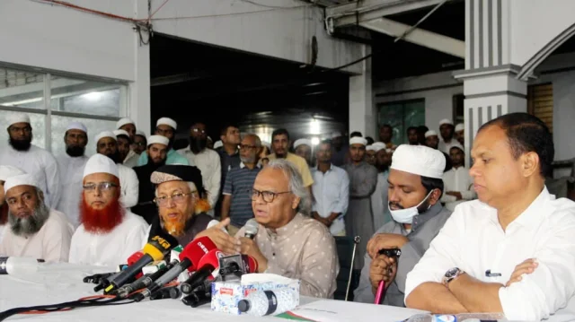 গতকাল সোমবার রাজধানীর বারিধারায় জামিয়া মাদানিয়া মাদরাসায় হেফাজতে ইসলামের ক্যান্সার আক্রান্ত নেতা মাওলানা এনামুল হাসান ফারুকীর সঙ্গে সাক্ষাৎ ও আর্থিক সহায়তা প্রদান শেষে তিনি এ কথা বলেন।পিআর পদ্ধতিকে সুপরিকল্পিত মাস্টারপ্ল্যান উল্লেখ করে বিএনপির সিনিয়র যুগ্ম মহাসচিব অ্যাডভোকেট রুহুল কবির রিজভী বলেছেন, এই পদ্ধতিতে নির্বাচন হলে মানুষ বিভ্রান্তিতে ভুগবে। এটি একটি সুপরিকল্পিত মাস্টারপ্ল্যান, যা কারো জন্যই কল্যাণ বয়ে আনবে না। পরাজিত শক্তির সঙ্গে আঁতাতের রাজনীতি কারো জন্য মঙ্গল হবে না। বরং এতে ভয়াবহ পরিস্থিতির সৃষ্টি হতে পারে।নেতাকর্মীদের রক্ত নিয়ে তামাশা করেছিল শেখ হাসিনা। অপপ্রচার, গণহত্যা দিয়ে মুসলমানদের দমন করা যাবে না।সোমবার দুপুরে বিএনপির সিনিয়র যুগ্ম মহাসচিব ও ‘আমরা বিএনপি পরিবার’-এর প্রধান উপদেষ্টা অ্যাডভোকেট রুহুল কবির রিজভীর নেতৃত্বে একটি প্রতিনিধিদল বারিধারায় জামিয়া মাদানিয়া মাদ্রাসায় হেফাজতে ইসলাম বাংলাদেশের সাবেক আমির আল্লামা জুনায়েদ বাবুনগরীর ব্যক্তিগত সহকারী ক্যান্সার আক্রান্ত মাওলানা এনামুল হাসান ফারুকীর সঙ্গে সাক্ষাৎ করেন। সাক্ষাৎকালে বিএনপির ভারপ্রাপ্ত চেয়ারম্যান তারেক রহমানের পক্ষ থেকে চিকিৎসা সহায়তা হিসেবে নগদ অর্থ মাওলানা ফারুকীর হাতে তুলে দেওয়া হয়। সেইসঙ্গে, অতীতের মতো ভবিষ্যতেও আলেমদের পাশে থাকার অঙ্গীকার ব্যক্ত করেন রিজভী।আমরা বিএনপি পরিবার’-এর প্রধান পৃষ্ঠপোষক তারেক রহমানের পক্ষ থেকে মাওলানা ফারুকীর প্রতি আন্তরিক সহমর্মিতার বার্তাও পৌঁছে দেন সংগঠনটির আহ্বায়ক আতিকুর রহমান রুমন।‘আমরা বিএনপি পরিবার’-এর প্রতিনিধি দলে উপস্থিত ছিলেন, সংগঠনটির উপদেষ্টা ইঞ্জিনিয়ার আশরাফ উদ্দিন বকুল, আবুল কাশেম, ইঞ্জিনিয়ার মোস্তফা-ই-জামান সেলিম, সদস্য সচিব কৃষিবিদ মোকছেদুল মোমিন মিথুন, জাতীয় প্রেসক্লাবের ম্যানেজিং কমিটির সদস্য জাহিদুল ইসলাম রনি, ‘আমরা বিএনপি পরিবার’-এর সদস্য মাসুদ রানা লিটন, মুস্তাকিম বিল্লাহ, শাকিল আহমেদ, ফরহাদ আলী সজীব, রুবেল আমিন ও শাহাদত হোসেন।হেফাজতে ইসলাম বাংলাদেশ-এর মাওলানা জুনায়েদ আল হাবিব, মাওলানা আজিজুল হক ইসলামাবাদী, মাওলানা হেদায়েতুল্লাহ কাসেমী, মুফতি জাবের কাসেমী, মাওলানা সানাউল্লাহ মাহমুদী, হাফেজ মাওলানা নূর মোহাম্মদ, মুফতি জাকির হোসেন কাসেমী, মাওলানা সালেহ আহমদ আজম ও মুফতি এনায়েত উল্লাহ উপস্থিত ছিলেন।