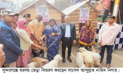 সুন্দরগঞ্জে ঘরসহ ভেড়া ও দুগ্ধদহন মেশিন বিতরণ