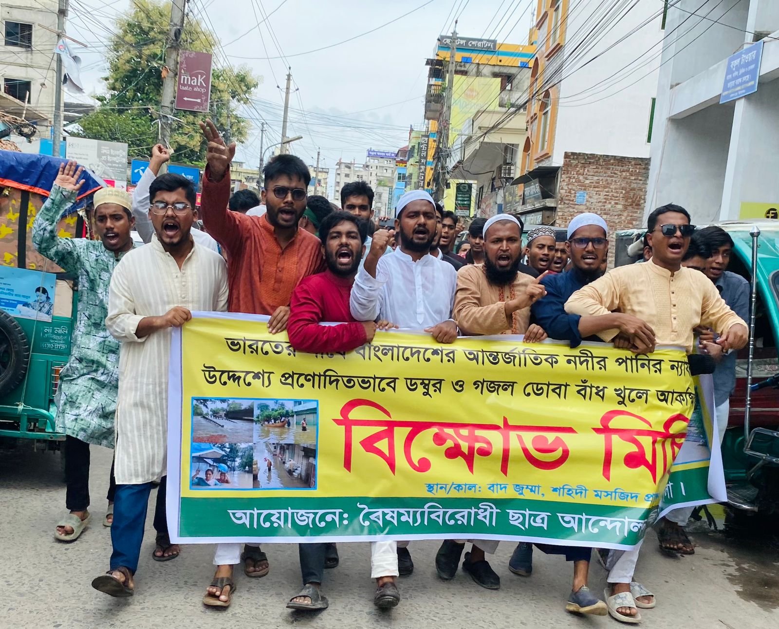 ভারতের সাথে বাংলাদেশের আন্তর্জাতিক নদীর পানির ন্যায্য হিস্যার দাবিতে এবং উদ্দেশ্য প্রণোদিতভাবে ডম্বুর ও গজল ডোবা বাঁধ খুলে আকষ্মিক বন্যা সৃষ্টির প্রতিবাদে কিশোরগঞ্জে বিক্ষোভ মিছিল করেছে বৈষম্যবিরোধী ছাত্র আন্দোলনের নেতাকর্মীরা।