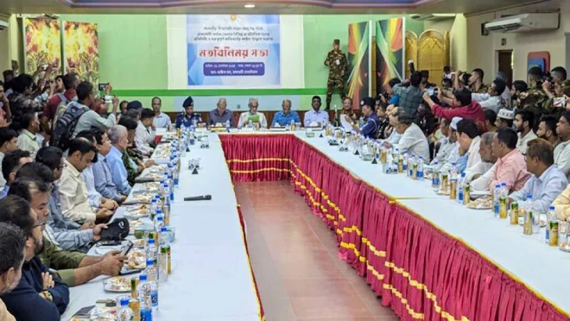 পার্বত্য চট্টগ্রামের চলমান পরিস্থিতি নিয়ে বৈঠকে বসেছেন বর্তমান সরকারের তিন উপদেষ্টা।আজ শনিবার দুপুর ১২টার পর রাঙামাটি জেলার সেনানিবাসের প্রান্তিক হলে এ বৈঠকে বসেছেন তারা।এতে উপস্থিত আছেন বিভিন্ন জাতি-গোষ্ঠী ও সংগঠনের নেতাকর্মীরা। এছাড়াও বৈঠকে রয়েছেন সেনাবাহিনী, বিজিবি, পুলিশ ও স্থানীয় নেতারা।মতবিনিময় সভায় উপস্থিত তিন উপদেষ্টা হলেন স্বরাষ্ট্র উপদেষ্টা লেফটেন্যান্ট জেনারেল মো. জাহাঙ্গীর আলম চৌধুরী (অব.), পার্বত্য চট্টগ্রামবিষয়ক মন্ত্রণালয়ের দায়িত্বে নিয়োজিত উপদেষ্টা সাবেক রাষ্ট্রদূত (অব.) সুপ্রদীপ চাকমা, স্থানীয় সরকার পল্লী উন্নয়ন ও সমবায় মন্ত্রণালয়ের উপদেষ্টা এ এফ হাসান আরিফ।মতবিনিময় সভা শেষে উপদেষ্টারা সাংবাদিকদের সঙ্গে কথা বলবেন বলে জানিয়েছেন সংশ্লিষ্টরা।জানা গেছে, রাঙ্গামাটির সভা শেষে খাগড়াছড়ি উদ্দেশ্যে রওনা দেবেন উপদেষ্টারা।এর আগে দুপুর ১২টার দিকে হেলিকপ্টারে বিজিবি হেড কোয়ার্টারে পৌঁছান স্বরাষ্ট্র উপদেষ্টা লেফটেন্যান্ট জেনারেল জাহাঙ্গীর আলম চৌধুরীসহ (অব.) তিন উপদেষ্টা।পার্বত্য জেলা রাঙামাটিতে শুক্রবার সংঘর্ষের পর ওইদিন রাত থেকেই সেনাবাহিনী, বিজিবি এবং পুলিশের সম্মিলিত টহল বাড়ানো হয়েছে। প্রশাসনের পক্ষ থেকে ১৪৪ ধারা জারি থাকায় রাঙামাটির পরিস্থিতি শান্ত রয়েছে। অনির্দিষ্টকালের পরিবহন ধর্মঘট ডাকায় মূল সড়কে গাড়ি নেই, তবে অভ্যন্তরীণ সড়কগুলোতে ব্যক্তিগত গাড়ি চলাচল করছে।এদিকে, তিন পার্বত্য জেলা খাগড়াছড়ি, রাঙামাটি ও বান্দরবানে আজ শনিবার সকাল ৬টা থেকে ‘সিএইচটি ব্লকেড’ নামে সড়ক ও নৌপথ অবরোধ চলছে।উল্লেখ্য, গেল বুধবার জেলার নিউজিল্যান্ড এলাকায় গণপিটুনিতে মামুন নামে এক যুবক নিহত হন। এ ঘটনার প্রতিবাদে বিক্ষোভ মিছিল বের করে দীঘিনালা ডিগ্রি কলেজের শিক্ষার্থীরা। বিক্ষোভ মিছিলটি লারমা স্কয়ারের দিকে যাওয়ার সময় পাহাড়িরা বাধা দিলে সংঘর্ষের সূত্রপাত হয়। পরে দুই পক্ষের মধ্যে ছড়িয়ে পড়ে সংঘর্ষ। একপর্যায়ে লারমা স্কয়ারে দোকানপাট ও বসতবাড়িতে আগুন দেয় দুর্বৃত্তরা। এতে পুড়ে যায় অন্তত ৫০-৬০টি দোকান। এ ঘটনায় তিনজন নিহত হন।