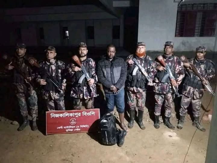 পরশুরাম উপজেলার মির্জানগর ইউনিয়নের কালিকাপুর সীমান্তে গিলবার্ট এপে নামক একজন নাইজেরিয়ান আটক,