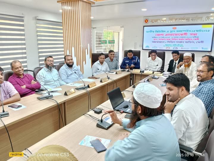 অদ্য ১০ই মার্চ, ২০২৫ তারিখে ফেনী সিভিল সার্জন কার্যালয়ের কনফারেন্স রুমে আগামী ১৫ই মার্চ অনুষ্ঠিতব্য জাতীয় ভিটামিন এ প্লাস ক্যাম্পেইন উপলক্ষে জেলা পর্যায়ের এডভোকেসি সভা অনুষ্ঠিত হয়। সভায় সভাপতিত্ব করেন জেলার মান্যবর সিভিল সার্জন ডা.মো: রুবাইয়াত বিন করিম মহোদয়। অত্র কার্যালয়ের মেডিকেল অফিসার ডা.মো: ইমাম হোসেনের এর সঞ্চালনায় উক্ত সভায় প্রধান অতিথি হিসেবে জেলা প্রশাসক জনাব সাইফুল ইসলাম মহোদয়, বিশেষ অতিথি হিসেবে অতিরিক্ত পুলিশ সুপার জনাব মো: সাইদুর রহমান, উপপরিচালক পরিবার পরিকল্পনা মহোদয়, উপজেলা স্বাস্থ্য ও পরিবার পরিকল্পনা কর্মকর্তাবৃন্দ, উপপরিচালক ইসলামিক ফাউন্ডেশন সহ বিভিন্ন দপ্তরের প্রতিনিধিবৃন্দ উপস্থিত ছিলেন।