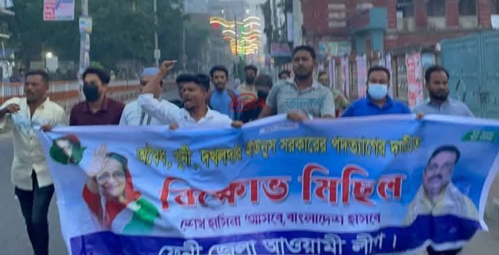 আজ ভোর ৫.৩০ মিনিটে ফেনী জেলা আওয়ামিলীগের ব্যানার নিয়ে ২০ -২৫ জন একত্রে বিভিন্ন শ্লোগান দিয়ে অন্তবর্তীকালীন সরকারের পদত্যাগ দাবি করে। কে বলেছে মুজিব নাই মুজিব আছে বাংলায়, পুলিশ আসার আগে এষ্টেশন রোড হয়ে মিছিলটি শেষ করে দ্রুত সরে যায়।এই নিয়ে ব্যাপক আলাপ আলোচনা হচ্ছে চায়ের দোকানগুলোতে। এরি মধ্য বিএনপি অঙ্গসংগঠনের অনেক ফেইজবুকে ক্ষোভ প্রকাশ করেন।