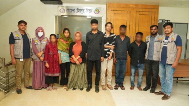 চাকরির প্রলোভন দেখিয়ে যুবকদের ‘হানি ট্র্যাপের’ ফাঁদে ফেলে অর্থ হাতিয়ে নেওয়া অভিযোগে রাজধানীর মিরপুর থেকে প্রতারণা চক্রের সাত সদস্যকে গ্রেপ্তার করেছে ঢাকা মহানগর গোয়েন্দা (ডিবি) পুলিশের মিরপুর বিভাগ। রাতে মিরপুরের বিভিন্ন স্থানে একাধিক অভিযানে তাদের গ্রেপ্তার করা হয়।গ্রেপ্তাররা হলেন— মো. বিপ্লব খান (৩৩), ফারিন তানহা তোফা (২৯), সম্পা আক্তার (২৪), শাহ মোহাম্মদ জোবায়ের অভিক (২৩), মো. আল-মাসুদ (৩২), মোছা. মনিকা আক্তার (১৮) ও মো. আবু সুফিয়ান।ডিবি মিরপুর বিভাগের অতিরিক্ত উপপুলিশ কমিশনার মো. সোনাহর আলী শরীফ জানান, এ সময় ভুক্তভোগীদের একটি রেডমি মোবাইল ফোনসহ অপরাধে ব্যবহৃত আরও তিনটি স্মার্টফোন জব্দ করা হয়েছে।অভিযোগ অনুযায়ী, চক্রটি ভুয়া চাকরির বিজ্ঞাপন দিত। আগ্রহী চাকরিপ্রার্থীদের মিরপুর বা শেওড়াপাড়ার নির্দিষ্ট বাসায় ডেকে নিয়ে যাওয়া হতো। একইভাবে শরীয়তপুরের মো. রহমান ও বান্দরবানের মো. মনির উদ্দিন একটি বিজ্ঞাপন দেখে তাদের সঙ্গে যোগাযোগ করেন। মঙ্গলবার মিরপুর শেওড়াপাড়ার একটি ফ্ল্যাটে ডেকে নিয়ে তাদের আটকে রেখে মারধর করা হয়।পরে কয়েকজন নারীকে তাদের পাশে বসিয়ে ভিডিও ধারণ করা হয় এবং তা সামাজিক যোগাযোগমাধ্যমে ছড়িয়ে দেওয়ার হুমকি দেওয়া হয়। ভীত হয়ে তারা নগদ ১১ হাজার টাকা ও মোবাইল ব্যাংকিংয়ের মাধ্যমে আরও ৫৫ হাজার টাকা দিতে বাধ্য হন। এ ছাড়া তাদের কাছ থেকে একটি নোকিয়া ও একটি রেডমি ফোন ছিনিয়ে নেয় চক্রটি।ডিবি কর্মকর্তাদের মতে, এ চক্র শুধু চাকরির বিজ্ঞাপনই নয়, ফেসবুক, ইমো ও টেলিগ্রামের মতো অ্যাপে বন্ধুত্ব, সম্পর্ক বা রিয়েল সার্ভিসের প্রলোভন দেখিয়ে যুবকদের ফাঁদে ফেলত। এরপর ব্ল্যাকমেল করে টাকা আদায় করা হতো।সামাজিক সম্মান হারানোর ভয়ে অধিকাংশ ভুক্তভোগী পুলিশের কাছে অভিযোগ করতেন না। এই সুযোগে প্রতারকেরা একই কৌশল ব্যবহার করে বিপুল অর্থ হাতিয়ে নেয়। কারও কাছ থেকে কয়েক হাজার টাকা, আবার কারও কাছ থেকে কয়েক লাখ টাকা নেওয়ার প্রমাণ মিলেছে।তদন্তে জানা গেছে, শুধু মিরপুর নয়, বরিশাল, নারায়ণগঞ্জ, চট্টগ্রাম ও কুমিল্লায়ও এ চক্র সক্রিয় ছিল। সামাজিক যোগাযোগমাধ্যমে ভুয়া প্রোফাইল ব্যবহার করে গ্রামীণ যুবকদের টার্গেট করত তারা।প্রাথমিক তদন্তে জানা গেছে, গ্রেপ্তারকৃত সাতজন ছাড়াও আরও কয়েকজন এ চক্রের সঙ্গে যুক্ত। তাদের শনাক্তে কাজ করছে পুলিশ।অতিরিক্ত উপকমিশনার সোনাহর আলী শরীফ বলেন, “চক্রটির বিরুদ্ধে একাধিক মামলা হচ্ছে। জিজ্ঞাসাবাদে নতুন তথ্য মিলছে। ভুক্তভোগীরা সম্মানহানির ভয়ে অভিযোগ না করায় তারা এত দিন ধরে প্রতারণা চালিয়ে আসছিল। সবাইকে সতর্ক থাকার আহ্বান জানাচ্ছি।