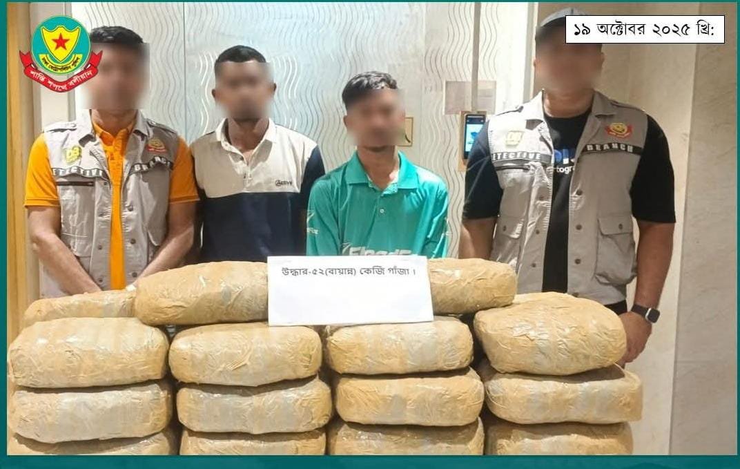 শনিবার (১৮ অক্টোবর ২০২৫) বিকাল আনুমানিক ৫:১০ ঘটিকায় তেজগাঁও থানাধীন ফার্মগেইট এলাকা হতে তাদের গ্রেফতার করা হয়।ডিবি-মতিঝিল বিভাগ সূত্রে জানা যায়, শনিবার বিকেলে রাজধানীতে মাদক উদ্ধারে বিশেষ অভিযান পরিচালনা কালে ডিবি-মতিঝিল বিভাগের একটি টিম গোপন সংবাদের মাধ্যমে জানতে পারে রাজধানীর তেজগাঁও থানাধীন ফার্মগেট এলাকার ফার্মভিউ সুপার মার্কেটের বিপরীত পার্শ্বে স্কাই রেস্টরেন্টের সামনে রাস্তায় কতিপয় মাদক কারবারি গাঁজা বিক্রয়ের উদ্দেশ্যে অবস্থান করছে। এমন তথ্যের ভিত্তিতে উক্ত স্থানে অভিযান পরিচালনা করে ৫২ কেজি গাঁজা ও একটি পিকআপসহ মোঃ ইমরান খন্দকার ও মোঃ আকিব মিয়াকে গ্রেফতার করা হয়।ডিবি সূত্রে আরও জানা যায়, গ্রেফতারকৃতরা পেশাদার মাদক কারবারি। তারা দীর্ঘদিন যাবৎ অবৈধ মাদকদ্রব্য ঢাকা মহানগরের বিভিন্ন এলাকায় বিক্রয় করতো মর্মে প্রাথমিক জিজ্ঞাসাবাদে স্বীকার করেছে।