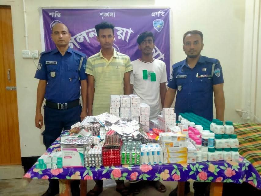 ০২জন আসামীসহ ৫২ প্রকার ভারতীয় বিভিন্ন ঔষুধ। ফেনী এর ছাগলনাইয়া থানার ,এফআইআর নং-১৭, তারিখ- ২৩ জুলাই, ২০২৫; জি আর নং-১৪২, তারিখ- ২৩ জুলাই, ২০২৫; সময়- ইং তারিখ ১৮.৩৫ ঘটিকা। ধারা- 25B The Special Powers Act, 1974;এসআই(নিঃ) মোঃ শাহাব উদ্দিন সঙ্গীয় ফোর্সসহ ২৩/০৭/২৫ইং তারিখ সন্ধ্যা ১৮.০৫ ঘটিকার সময় ছাগলনাইয়া থানাধীন উত্তর যশপুর সাকিনস্থ রওশন ফকিরের মাজারের সামনে পাকা রাস্তার উপর অভিযান পরিচালনা করিয়া আসামী ১) মোঃ শাকিল(২৩), ২। মোঃ জিসান(২৩), দ্বয়ের হেফাজত হইতে ৫২(বায়ান্ন) প্রকার ভারতীয় বিভিন্ন ঔষুধ, যাহার মূল্য অনুমান-৩,৯৩,৬৪৩/- টাকা ও একটি পুরাতন অনটেস্ট সিএনজিসহ গ্রেফতার করিয়া থানায় আসিয়া এজাহার দায়ের করেন।