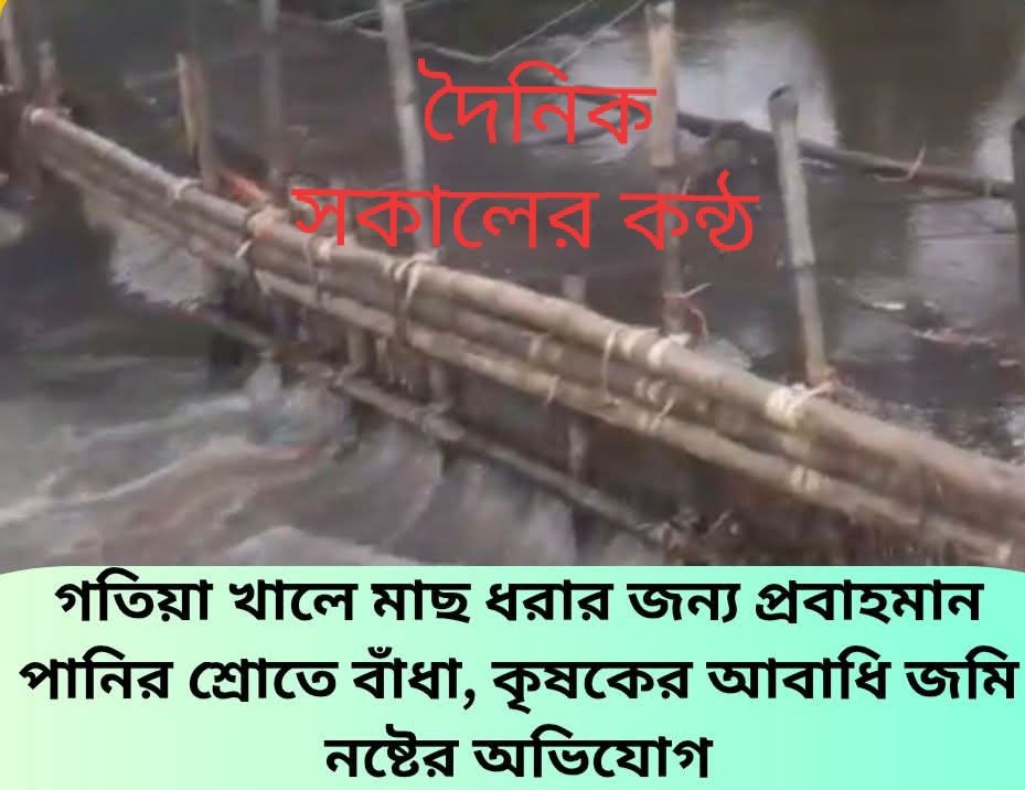 গতিয়া খালে মাছ ধরার জন্য প্রবাহমান পানির শ্রোতে বাঁধা, কৃষকদের আবাধি জমি নষ্টের অভিযো