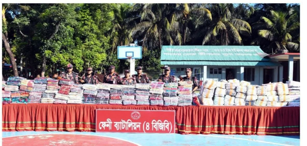 ১৯ এবং ২০ নভেম্বর ২০২৫ তারিখ গোপন সংবাদ এর ভিত্তিতে ফেনী ব্যাটালিয়ন (৪ বিজিবি) এর টহলদল কর্তৃক ফেনী জেলার ফুলগাজী, ছাগলনাইয়া ও পরশুরাম উপজেলা এবং চট্টগ্রাম জেলার মিরসরাই উপজেলার জোরারগঞ্জ থানার* অর্ন্তগত সীমান্ত এলাকায় চোরাচালান বিরোধী অভিযান পরিচালনা করে *বিপুল পরিমান ভারতীয় কাপড়: শাড়ী, থ্রী পিস, পাঞ্জাবী ইত্যাদি এবং চকলেট, মদ, গরু ও চোরাচালানী মালামাল পরিবহনে ব্যবহৃত সিএনজি* জব্দ করতে সক্ষম হয়। জব্দকৃত মালামালের আনুমানিক *বাজার মূল্য ০১ কোটি ০৭ লক্ষ ৪৮ হাজার ১৭৫ টাকা*। জব্দকৃত মালামাল পরবর্তী কার্যক্রমের জন্য স্থানীয় কাস্টমস অফিস এবং মাদক সমূহ থানায় জমা করার কার্যক্রম প্রক্রিয়াধীন।