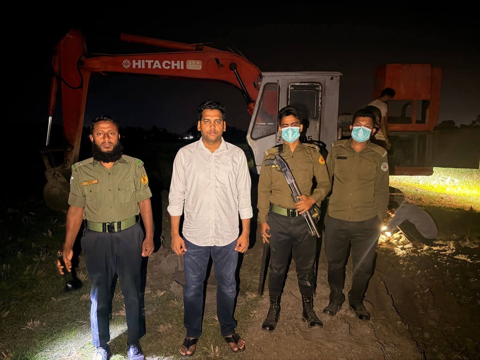 ফেনীর দাগনভূঞা উপজেলায় ফসলি জমির উপরিভাগের মাটি (টপ সয়েল) কাটা রোধে বিশেষ অভিযান পরিচালনা করেছে উপজেলা প্রশাসন। অভিযানে মাটি পরিবহনে ব্যবহৃত দুটি ট্রাক জব্দ করা হয়েছে এবং দুটি এস্কেভেটর (ভেকু মেশিন) অকেজো করে দেওয়া হয়েছে।গত বুধবার রাত ১০:৩০ টা থেকে রাত ১ টা পর্যন্ত উপজেলার পূর্বচন্দ্রপুর ও রাজাপুর ইউনিয়নের বিভিন্ন এলাকায় এই ঝটিকা অভিযান চালানো হয়। অভিযানের নেতৃত্ব দেন দাগনভূঞার সহকারী কমিশনার (ভূমি) ও এক্সিকিউটিভ ম্যাজিস্ট্রেট শাহিদুল আলম।প্রশাসন সূত্রে জানা গেছে, অবৈধভাবে ফসলি জমির মাটি কাটার খবর পেয়ে অভিযান শুরু করলে জড়িত ব্যক্তিরা টের পেয়ে দ্রুত পালিয়ে যায়। অপরাধীরা সটকে পড়ায় তাৎক্ষণিকভাবে কাউকে আটক বা মোবাইল কোর্টের মাধ্যমে দণ্ড প্রদান করা সম্ভব হয়নি। তবে ঘটনাস্থল থেকে মাটি পরিবহনে ব্যবহৃত ০২টি ট্রাক জব্দ করা হয়। এছাড়া দুর্গম স্থানে হওয়ায় ০২টি এস্কেভেটর নিয়ে আসা সম্ভব না হওয়ায় সেগুলো ঘটনাস্থলেই অকেজো করে দেওয়া হয়।অভিযানে আনসার সদস্যদের একটি চৌকস টিম আইন-শৃঙ্খলা রক্ষায় এবং সঙ্গীয় ফোর্স হিসেবে গুরুত্বপূর্ণ সহযোগিতা প্রদান করেন।অভিযান শেষে সহকারী কমিশনার (ভূমি) শাহিদুল আলম জানান, কৃষি জমির উর্বরতা রক্ষায় টপ সয়েল কাটা বন্ধে প্রশাসনের এই কঠোর অবস্থান অব্যাহত থাকবে। জনস্বার্থে এবং ফসলি জমি রক্ষায় ভবিষ্যতে এ ধরণের অভিযান আরও জোরদার করা হবে।