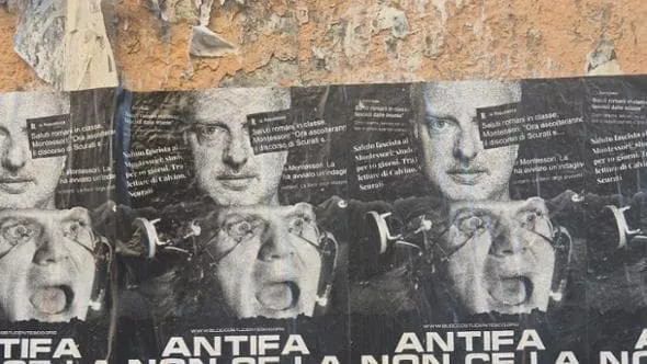 আন্টিফা আমাদের মারবেন না, তোমার নৈতিকতা আমাদের জন্য খারাপ…’ লেখা কিছু পোস্টার আজ রোমের মন্টেসরি স্কুলের সামনে দেখা গেছে, যেখানে কয়েকদিন আগে রোমানকে স্যালুট দেওয়ার সময় ক্লাসে দুই ছাত্র ধরা পড়েছিল। . ফ্লাইয়ারগুলিতে লেখক আন্তোনিও স্কুরাতির একটি ছবি এবং এ ক্লকওয়ার্ক অরেঞ্জ ফিল্ম থেকে নেওয়া কিছু ছবি রয়েছে। যে ছেলেরা ফ্যাসিবাদী স্যালুট দিয়েছে তারা ইতিহাস এবং প্রতিরোধের কিছু বই পড়তে এবং ফ্যাসিবাদ এবং জনতাবাদের উপর আন্তোনিও স্কুরাতির টিভি বক্তৃতা শুনতে বাধ্য হয়েছিল; লাইব্রেরিতে বইয়ের ক্যাটালগ করা থেকে ভলিবল কোর্টের লাইন আঁকা পর্যন্ত বাড়িতে এবং স্কুলে কিছু সামাজিকভাবে দরকারী কাজ কাটাতে তাদের দশ দিনের সাসপেনশন দেওয়া হয়েছিল।